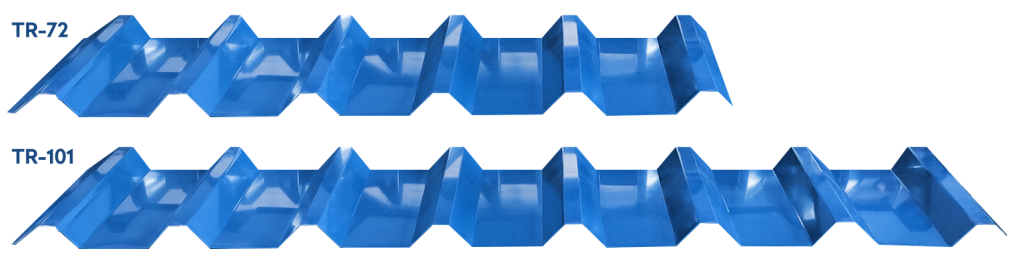 Perfil Acanalado TR101 es de configuración trapezoidal fabricado en planta mediante una roladora estacionaria a partir de rollo de acero Ternium Zintro, Zintro alum o Pintro, diseñado para ser utilizado como cubierta de fijación expuesta. Acero estructura GR33 y GR80.